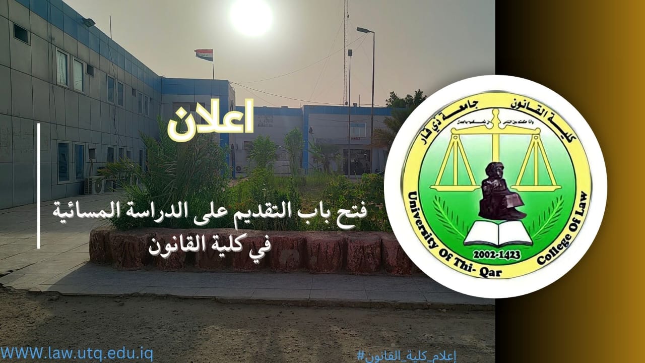 اعلان //التقديم على الدراسة المسائية في كلية القانون – جامعة ذي قار.