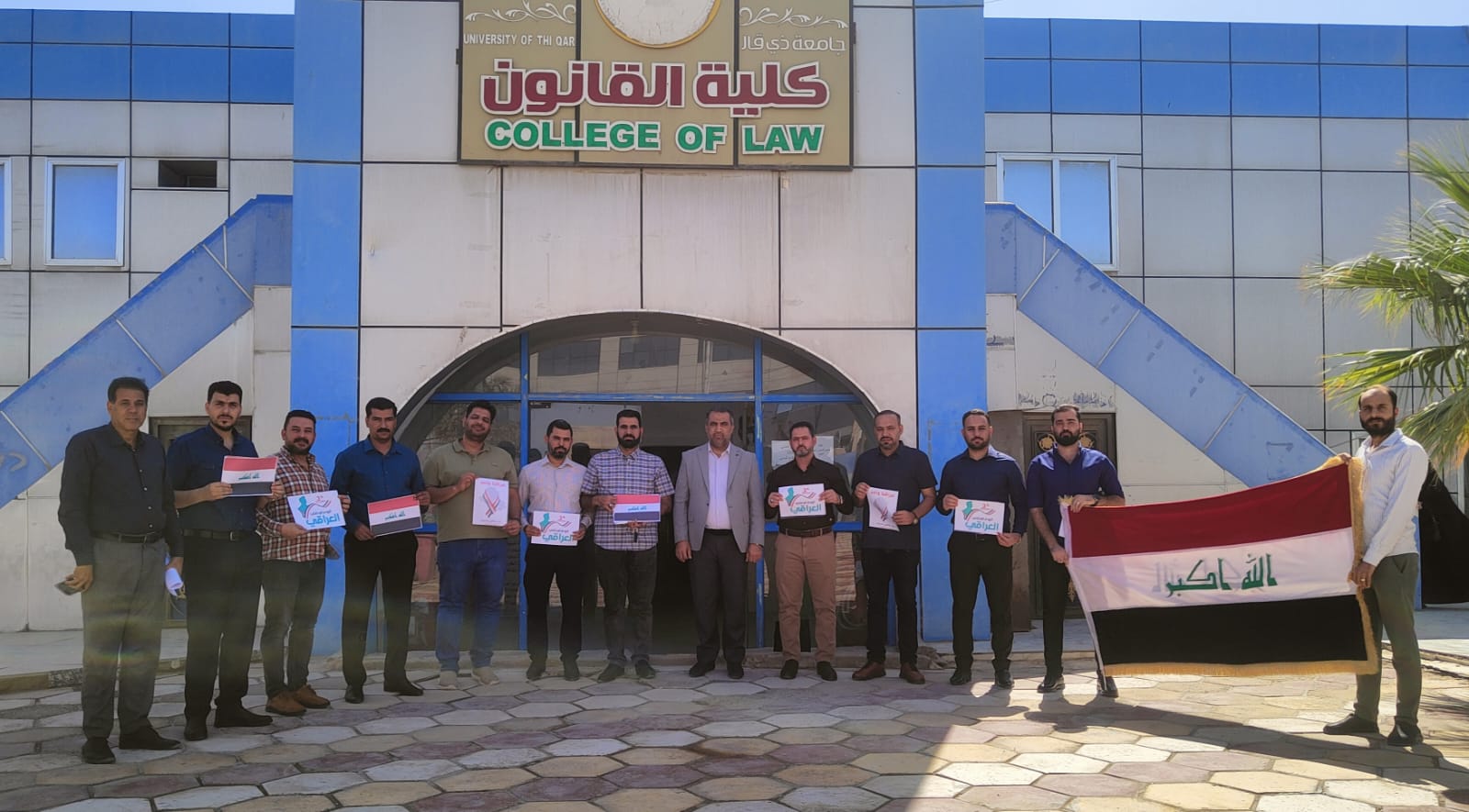 بحضور عدد من اساتذة الكلية وموظفيها وطلبتها في مشهد جسد عمق الروح الوطنية ووحدة الأسرة الجامعية تحت راية العراق، مؤكدين على أهمية دور القانون في تعزيز روح المواطنية، وترسيخ مبادئ العدالة وسيادة الدولة، وعبر الحضور عن الفخر والانتماء للوطن. والتمنيات للعراق بالامن والتقدم والازدهار .