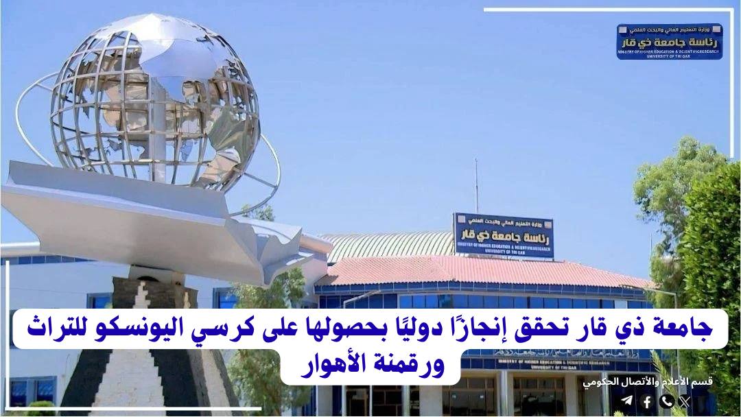 ويُعد هذا الإنجاز علامة فارقة في تاريخ جامعة ذي قار، جاء ثمرةً لملف علمي متكامل قدّمته الجامعة واستوفى معايير اليونسكو الدولية بدقة، ليضعها ضمن أبرز المؤسسات الأكاديمية التي نالت هذا الامتياز العالمي الرفيع.