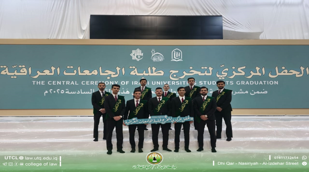 شاركَ عددٌ من طلبةِ وخريجي كليةِ القانون في جامعةِ ذي قار في الحفلِ المركزي السنوي الذي أقامته العتبةُ العبّاسيةُ المقدّسة، وهو تقليدٌ راسخٌ يُنظَّمُ احتفاءً بطلبةِ الجامعات العراقيّة وتكريمًا لمسيرتهم العلميّة.
