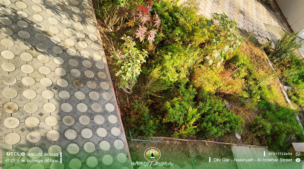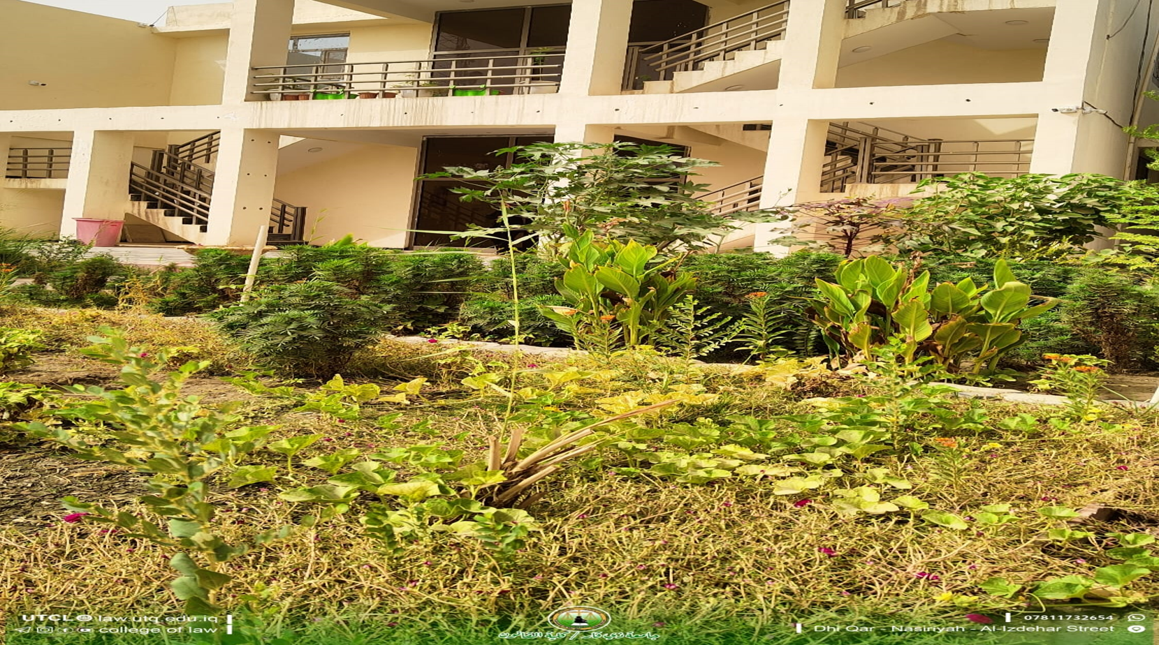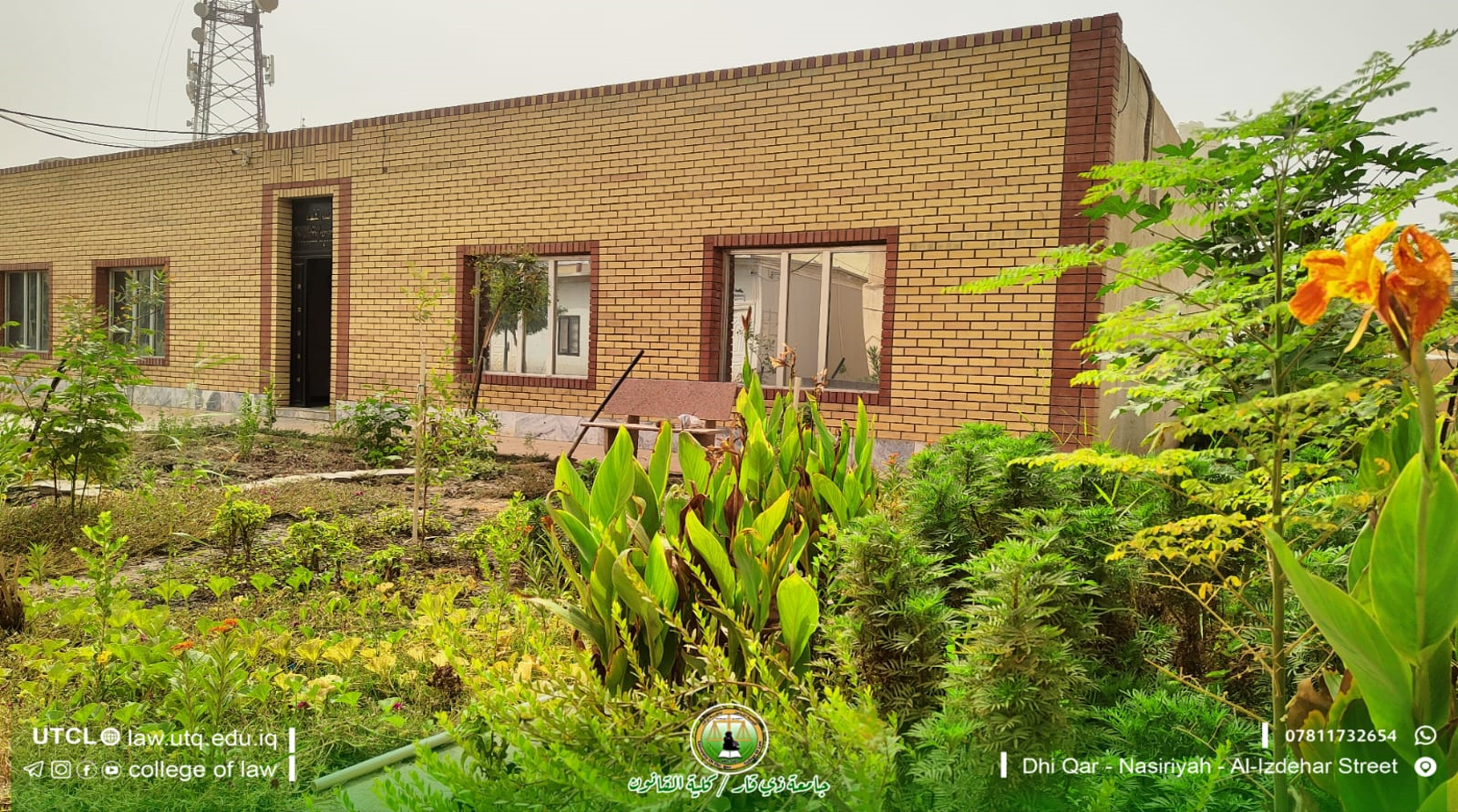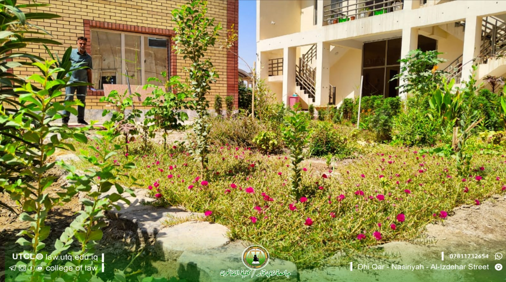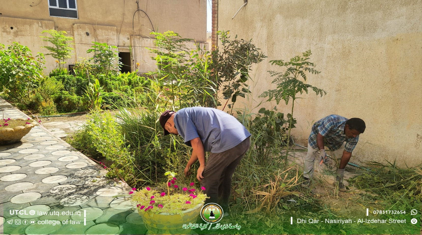 باشرت وحدة التشجير في كلية القانون جامعة ذي قار بأدامة وتشجير المساحات الخضراء في اروقة وحدائق الكلية،