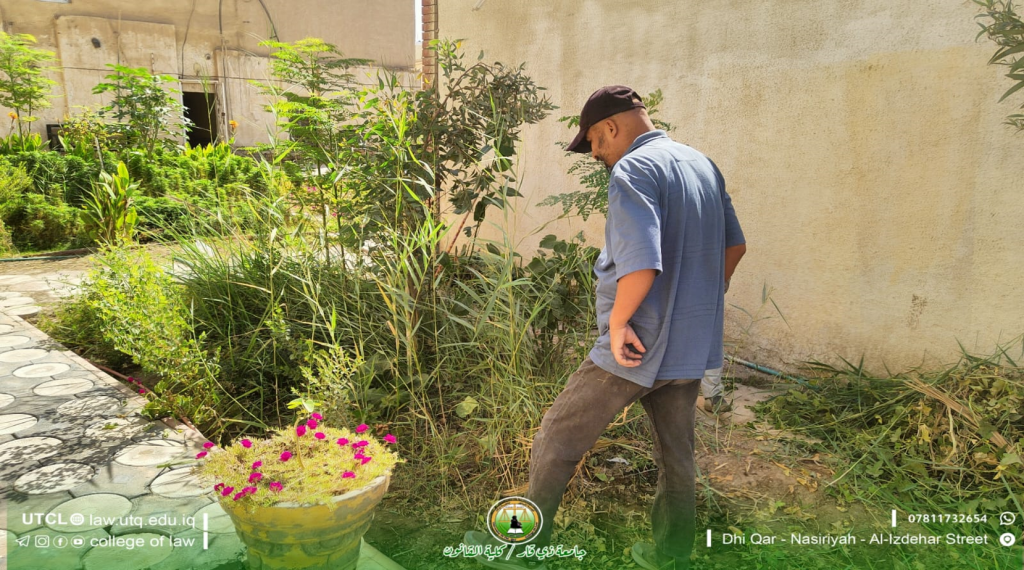 ويأتي هذا العمل ضمن الخطة الدورية التي تعتمدها الكلية لإدامة المساحات الخضراء والاعتناء بأروقة الكلية وديمومتها، وبما ينسجم مع توجهات الجامعة في تعزيز الاستدامة البيئية والاهتمام بالغطاء النباتي وزيادة المساحات الخضراء داخل المؤسسات التعليمية .