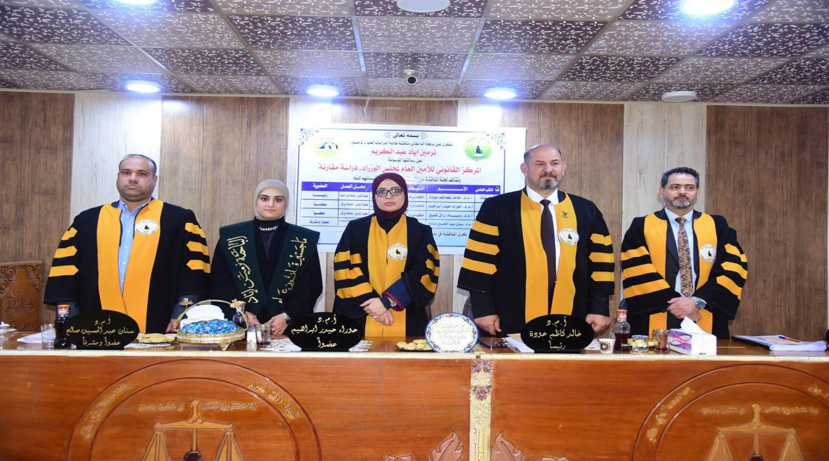 تمت في كلية القانون مُناقشة رسالة ماجستير في قسم القانون العام لطالبة الدراسات العُليا ( نرمين اياد عبد الكريم ) عن رسالتها الموسومة ب( المركز القانوني للأمين العام لمجلس الوزراء _ دراسة مقارنة ) يوم الاحد الموافق ٢٠٢٦/٢/٨ على قاعة المناقشات في الكلية
