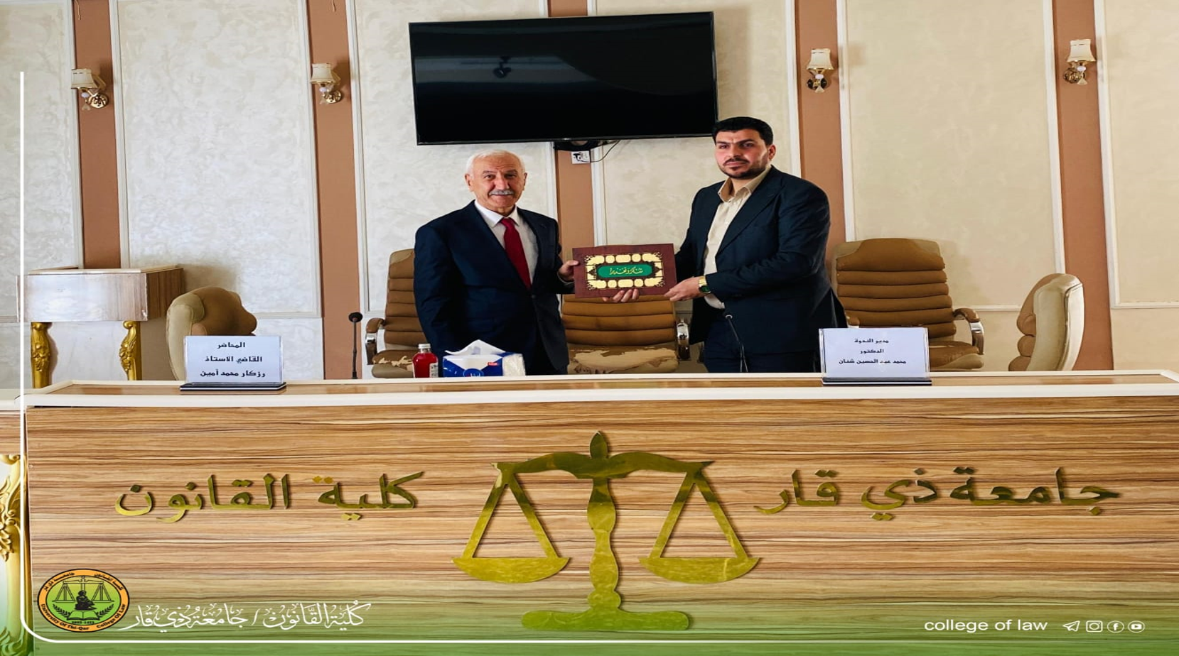 وتمت فيها استقبال وحضور( القاضي رزكار محمد امين ) وتم استقباله في قاعة مناقشات الكلية بالتعاون مع وحدة النشاطات الطلابية في الكلية،